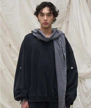 RELABEL Detachable-Hood Distressed Ripped Sweatshirt