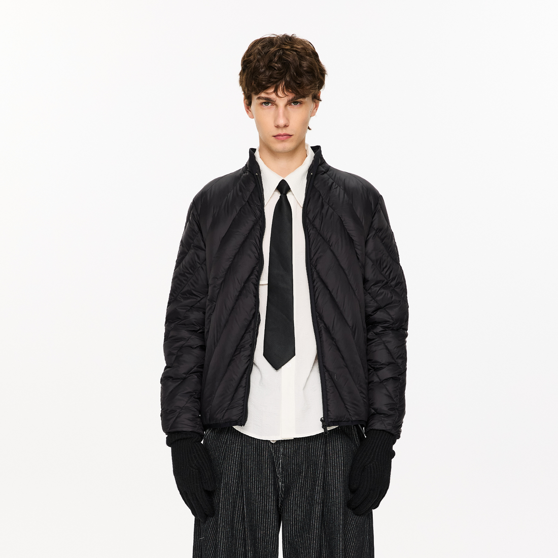 The Asymmetric Contrast Light Down Jacket introduces a directional approach to outerwear design through its...