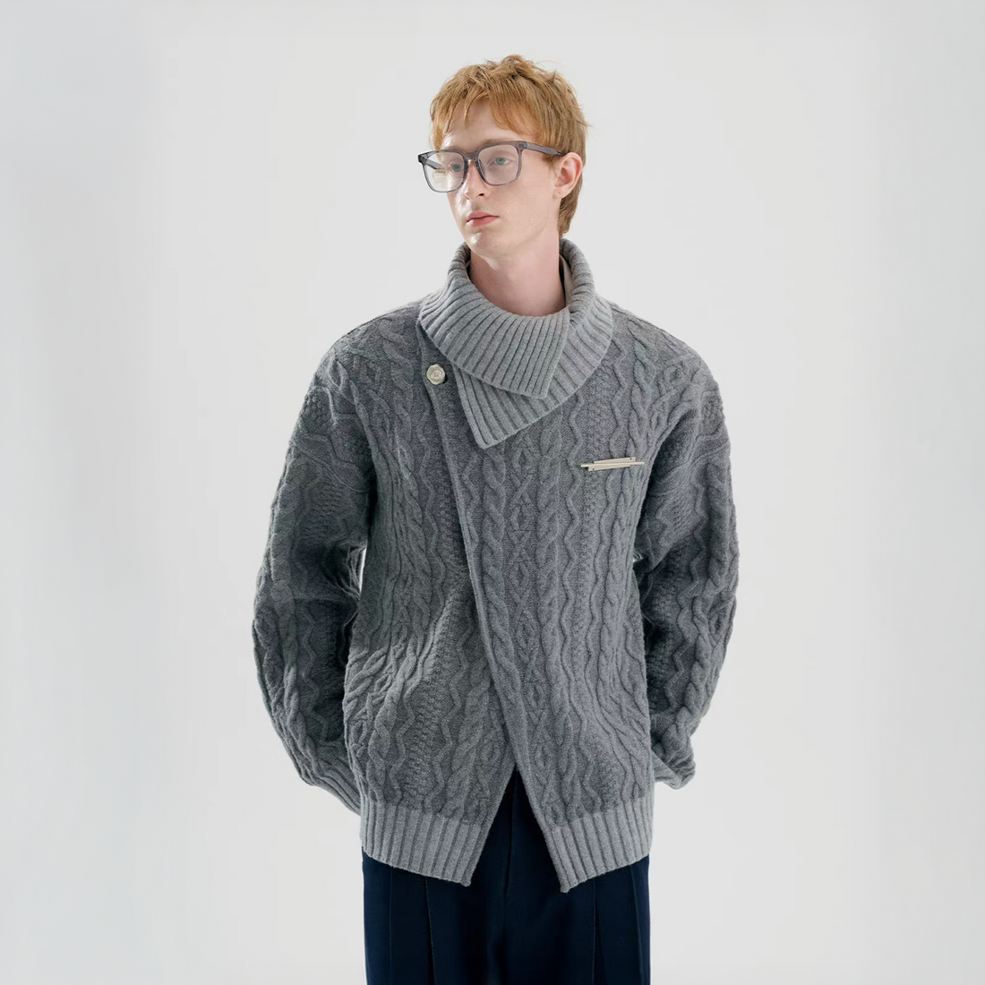 TIWILLTANG Crossed Cable-Knit Shawl-Collar Cardigan