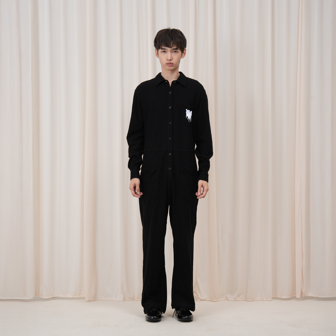 OUYANG WENJUN Wool Fluid-Heart Embroidered Jumpsuit