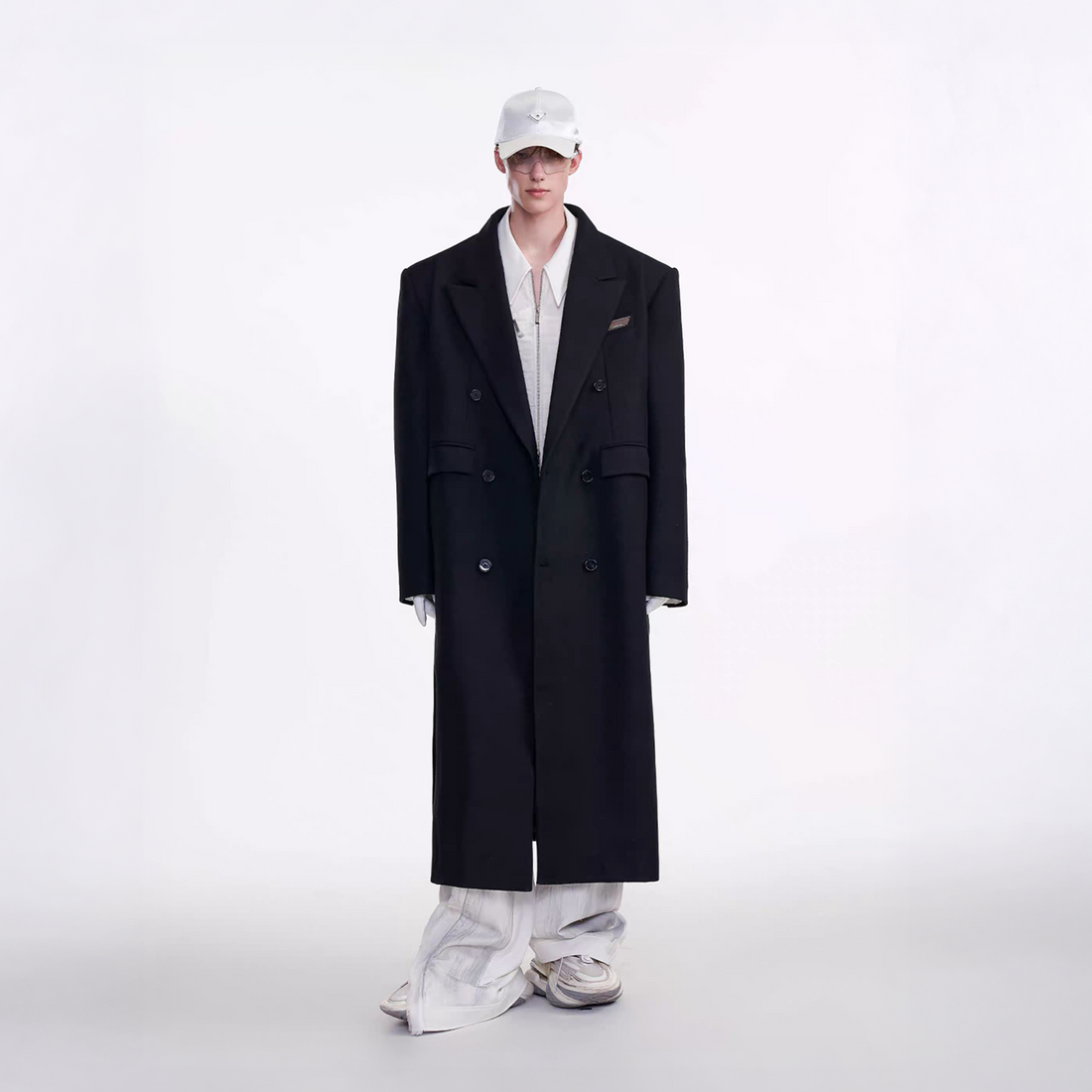 OUYANG WENJUN Minimal Wool Oversized Coat Black