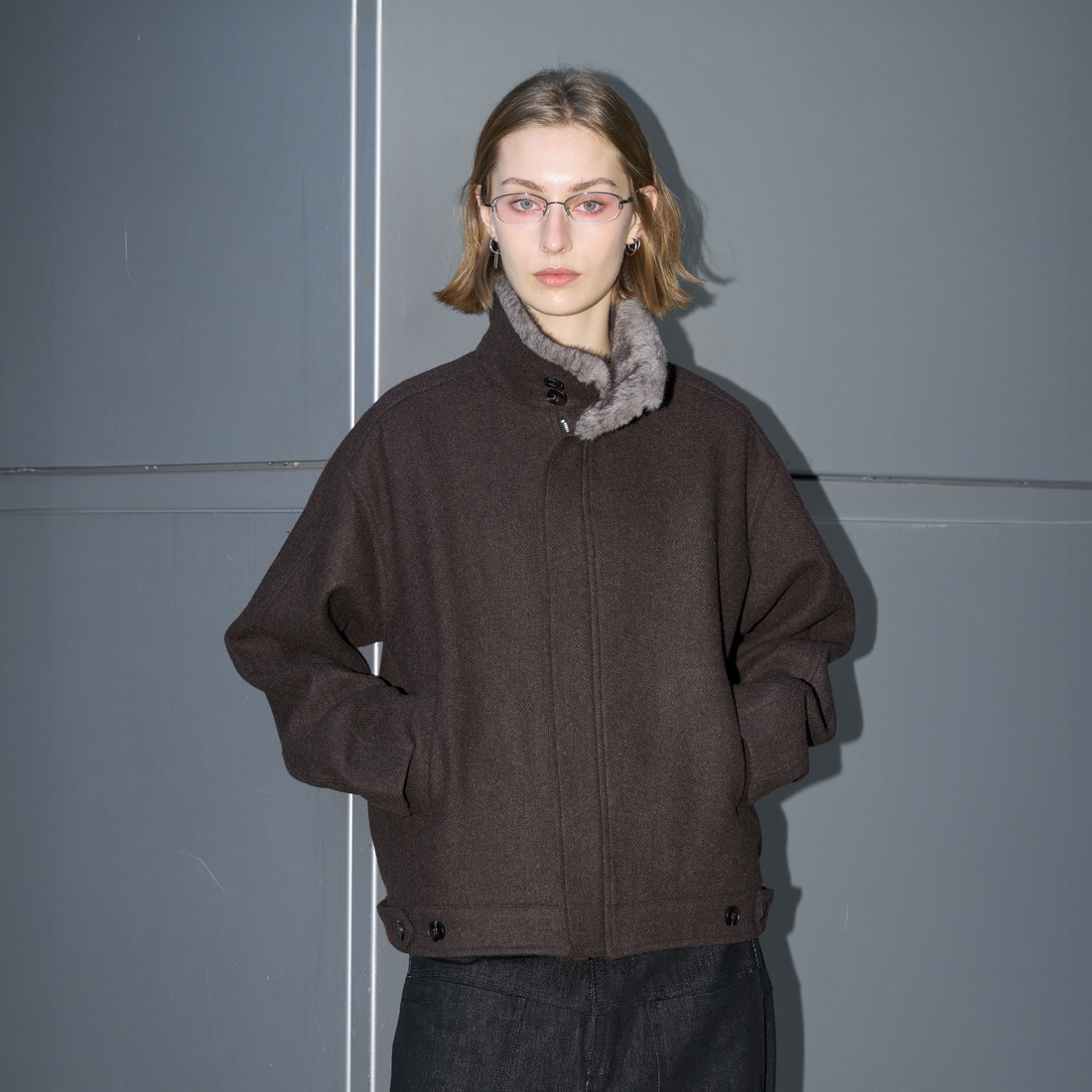LABELROOM Modern Faux-Fur Collar Wool Jacket Brown