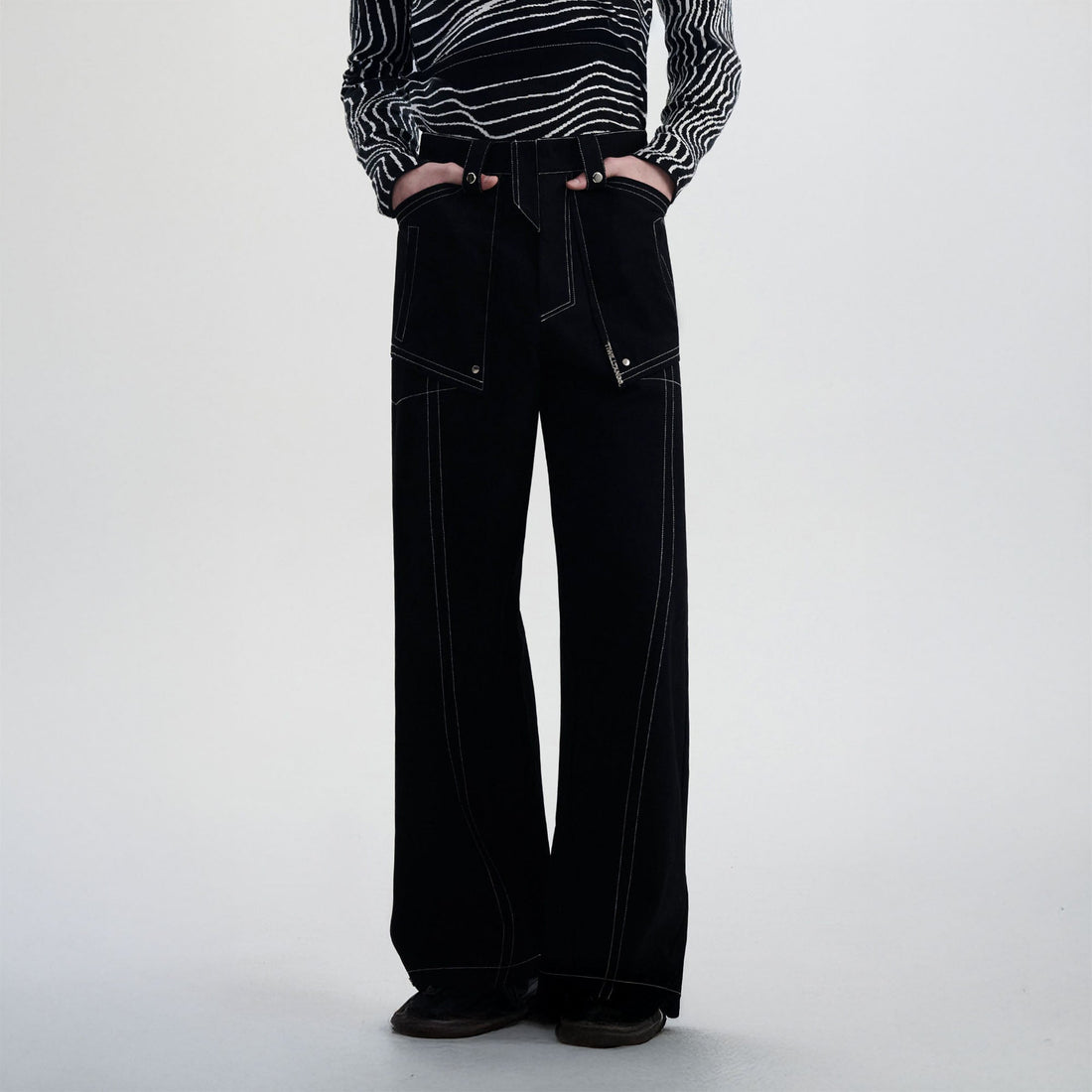 TIWILLTANG Rivet Stitch Embroidered Straight-Leg Pants