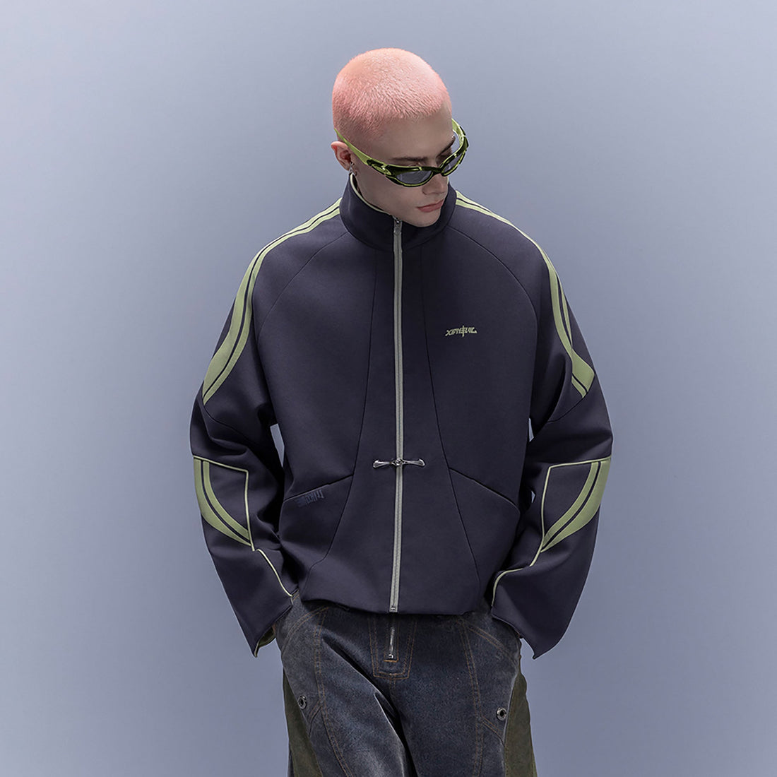 XIPHEVIL Contrast-Paneled Raglan Track Jacket Blue