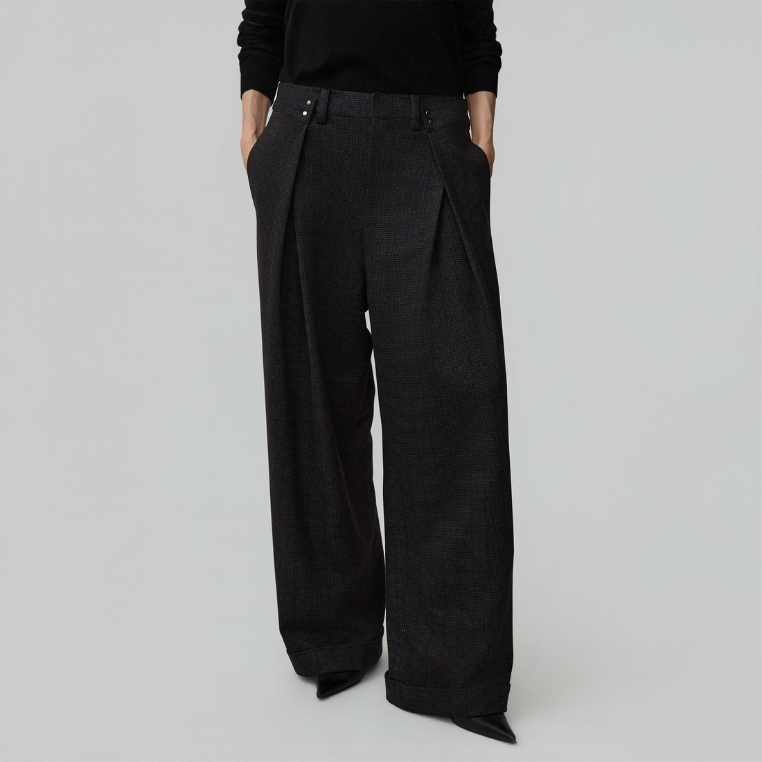 TIWILLTANG Classic Pleats Wool-Blend Wide-Leg Pants