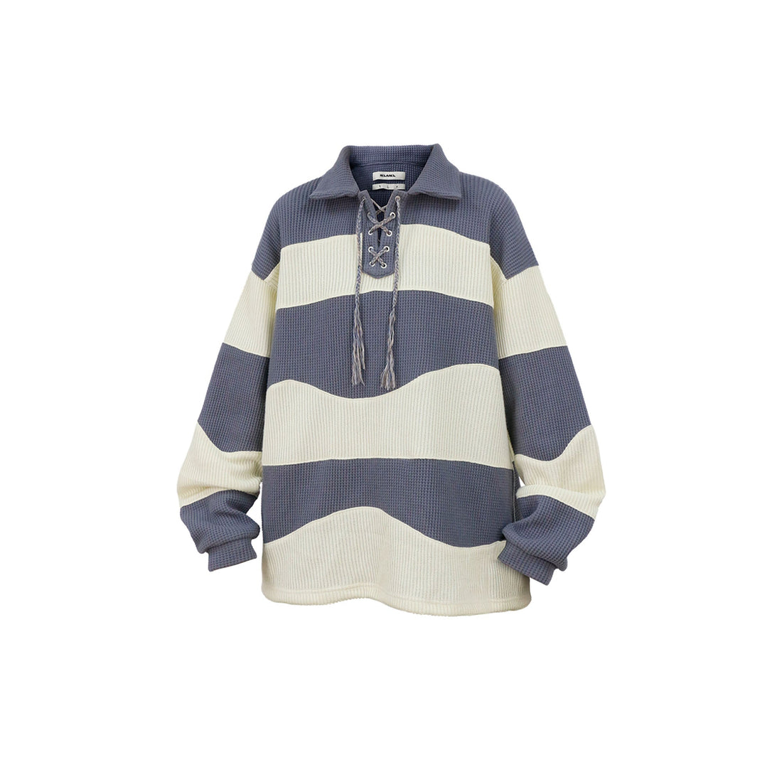 RELABEL Waffle-Knit Stripe Lace-Up Sweatshirt