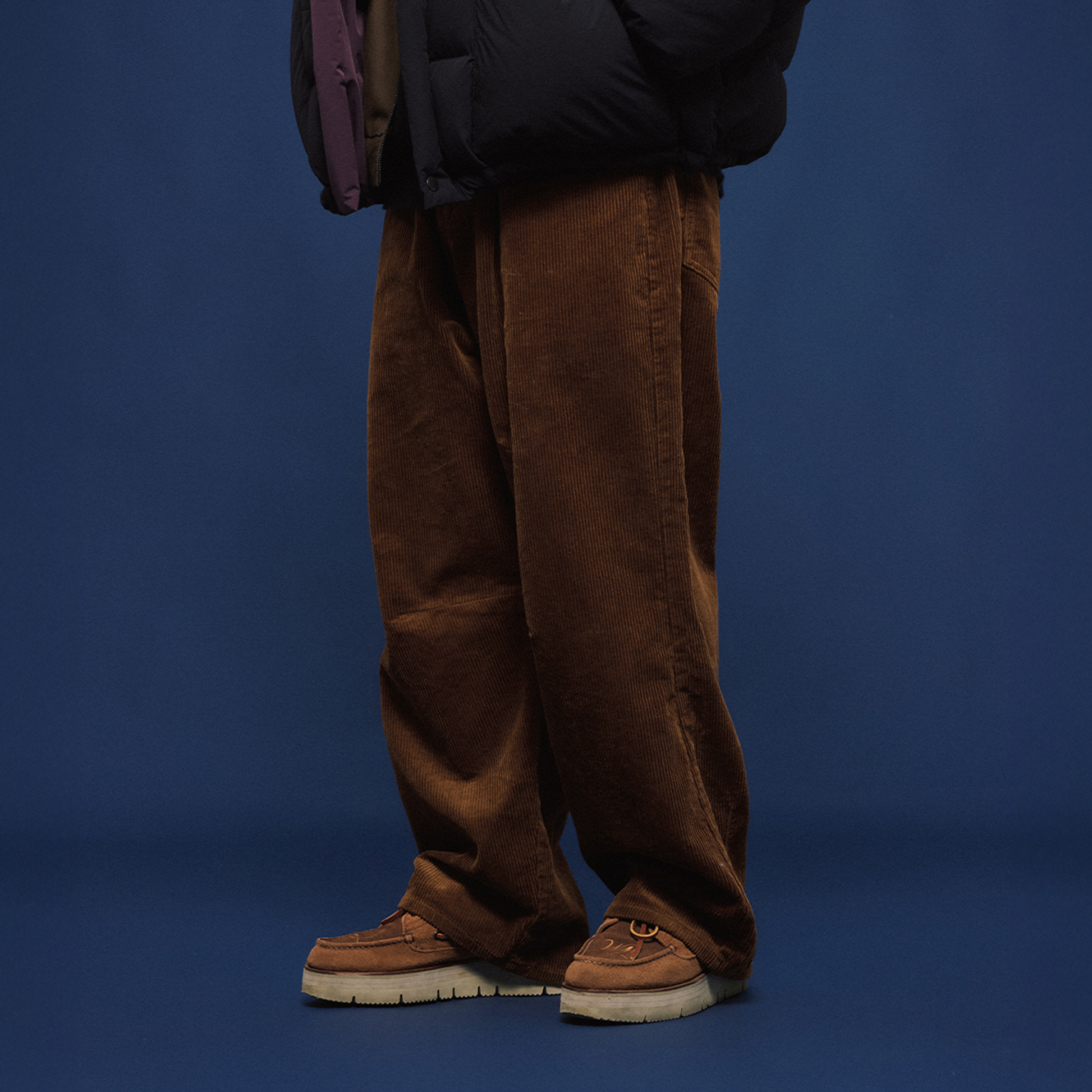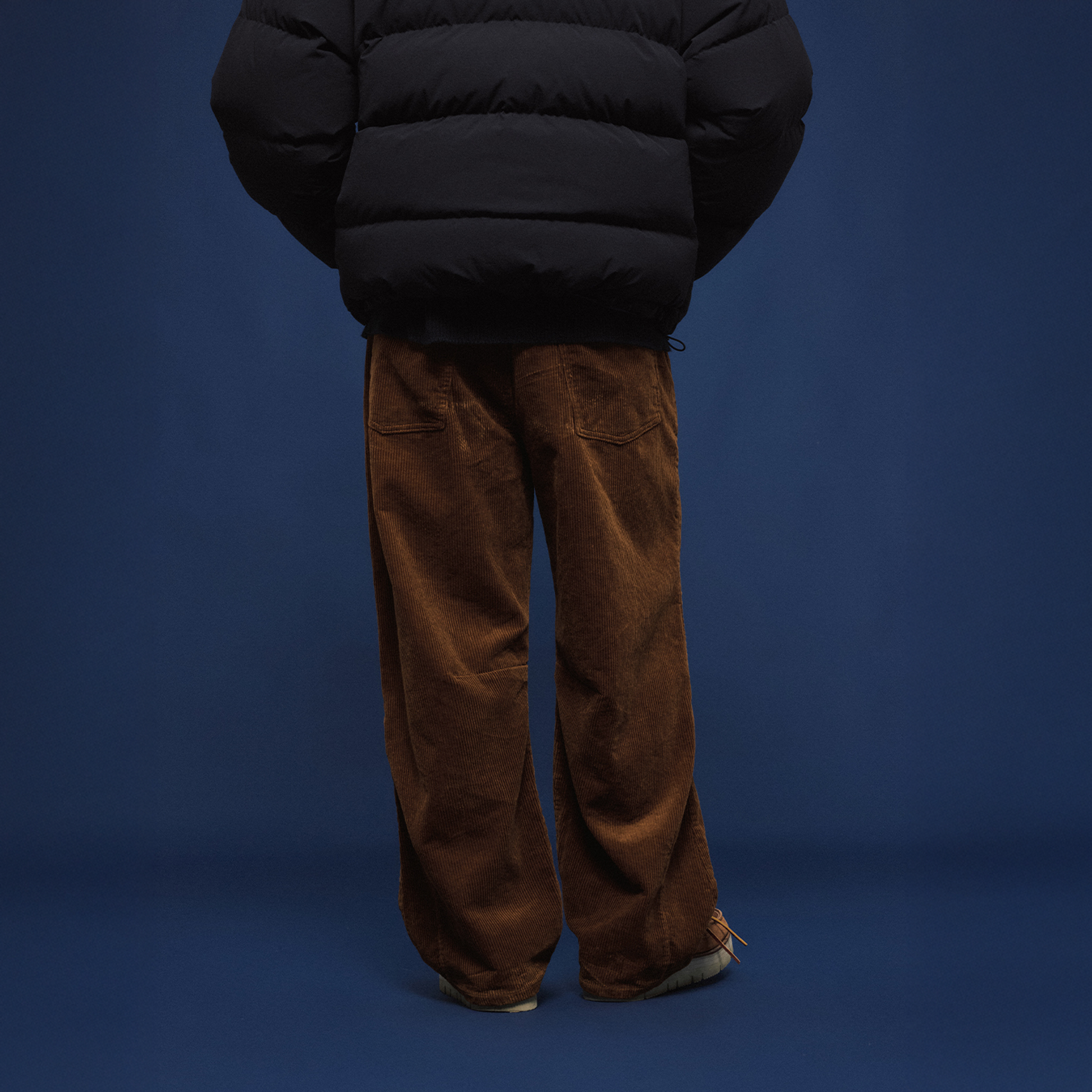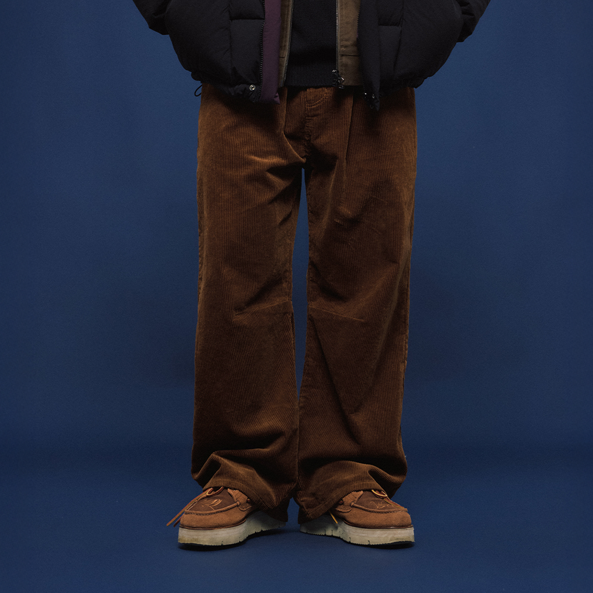 The Corduroy Pleated Wide-Leg Trousers reinterpret cold-season comfort with a bold silhouette and tactile depth. Cut from plush wide-wale corduroy, these trousers feature a relaxed, voluminous leg and a single deep pleat for subtle shaping. The mid-rise fit and soft drape create a casual, oversized feel without sacrificing structure. Offered in classic black and rich chestnut brown, they channel a grounded warmth that complements both rugged outerwear and refined winter layers.