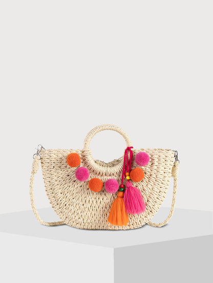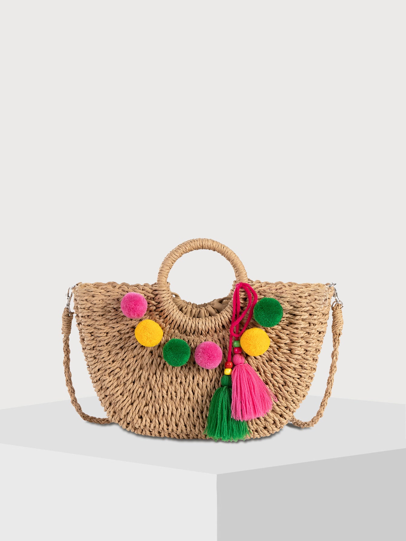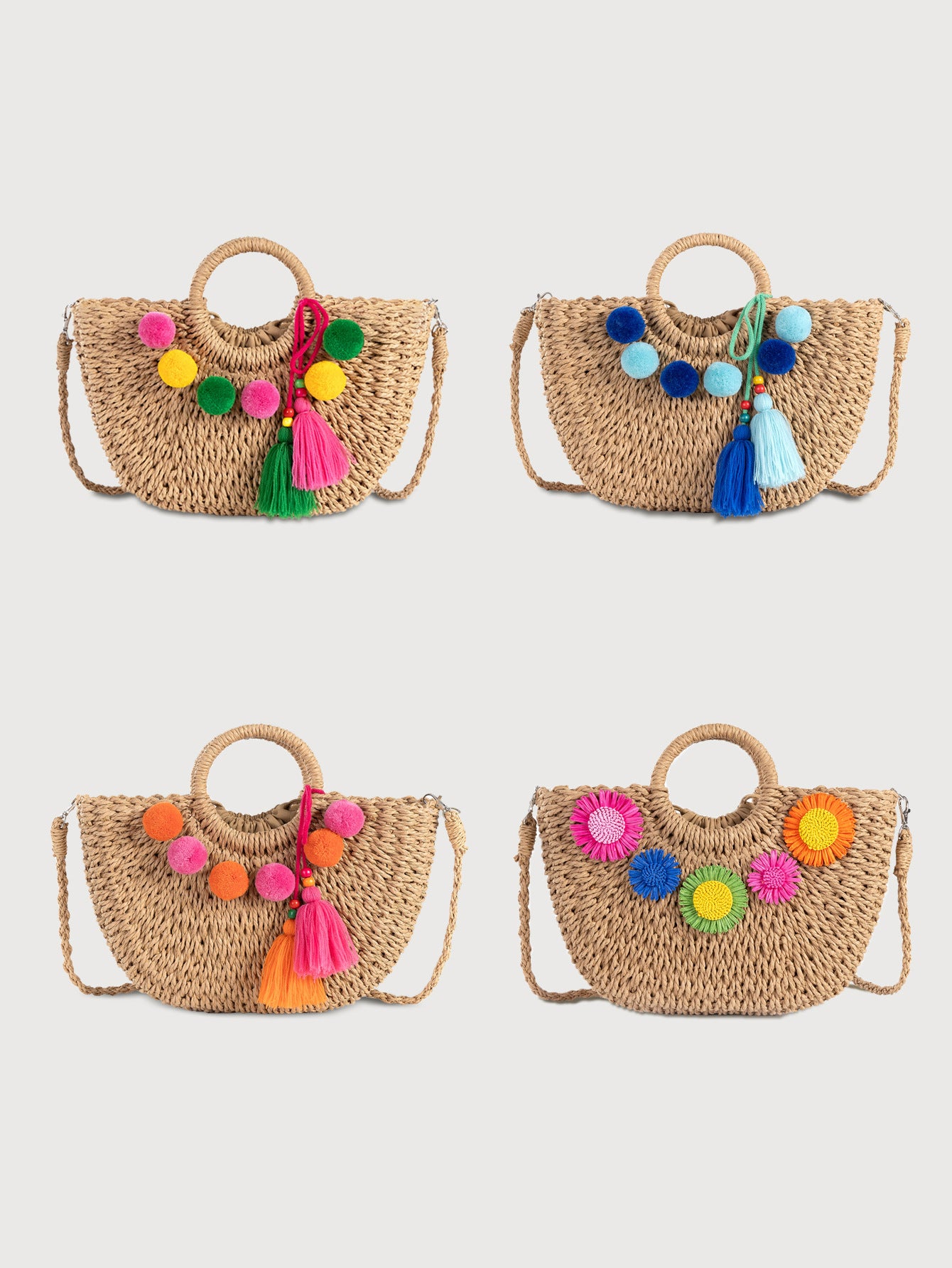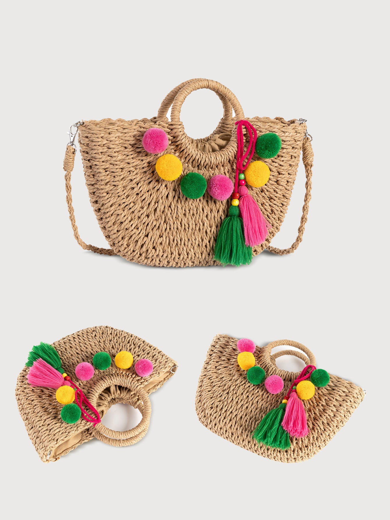 Boho Straw Woven Handbag – Women’s Natural Rattan Tote Bag