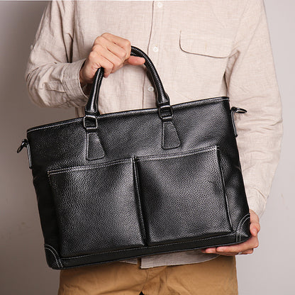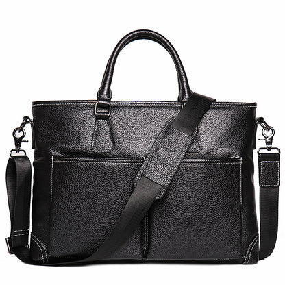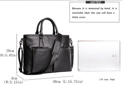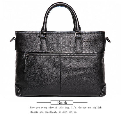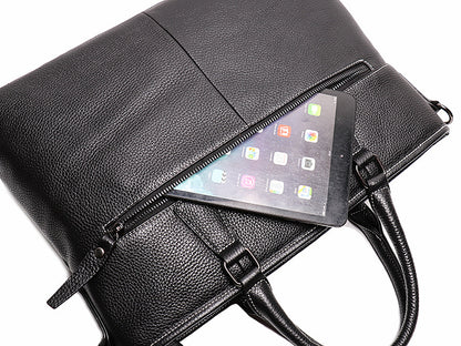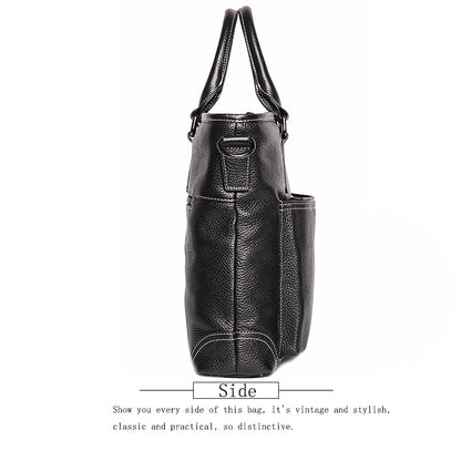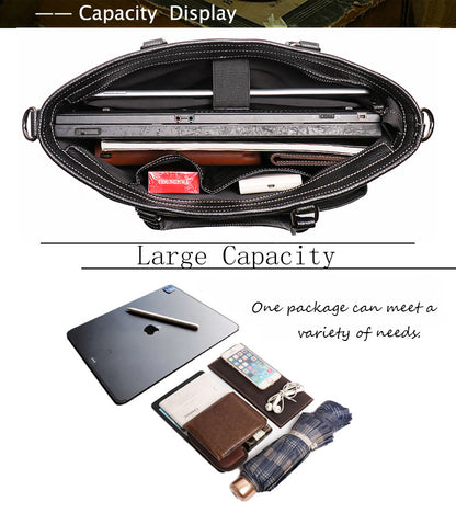 Black Cowhide Leather Business Computer Bags with Large Capacity 30242