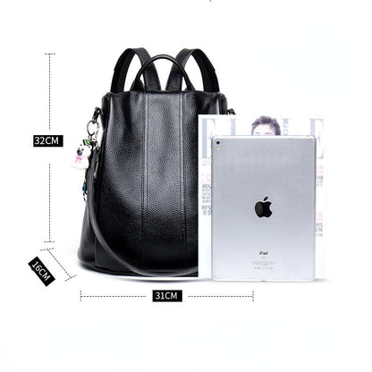 This Women's leather backpack is an effortless hands-free leather bag you will like to take it with you everyday. The casual design features one outside zippered pocket in front, two open sided pockets plus 2 inside zippered pockets. Large storage enought for iPad, phone, books, wallets and more.