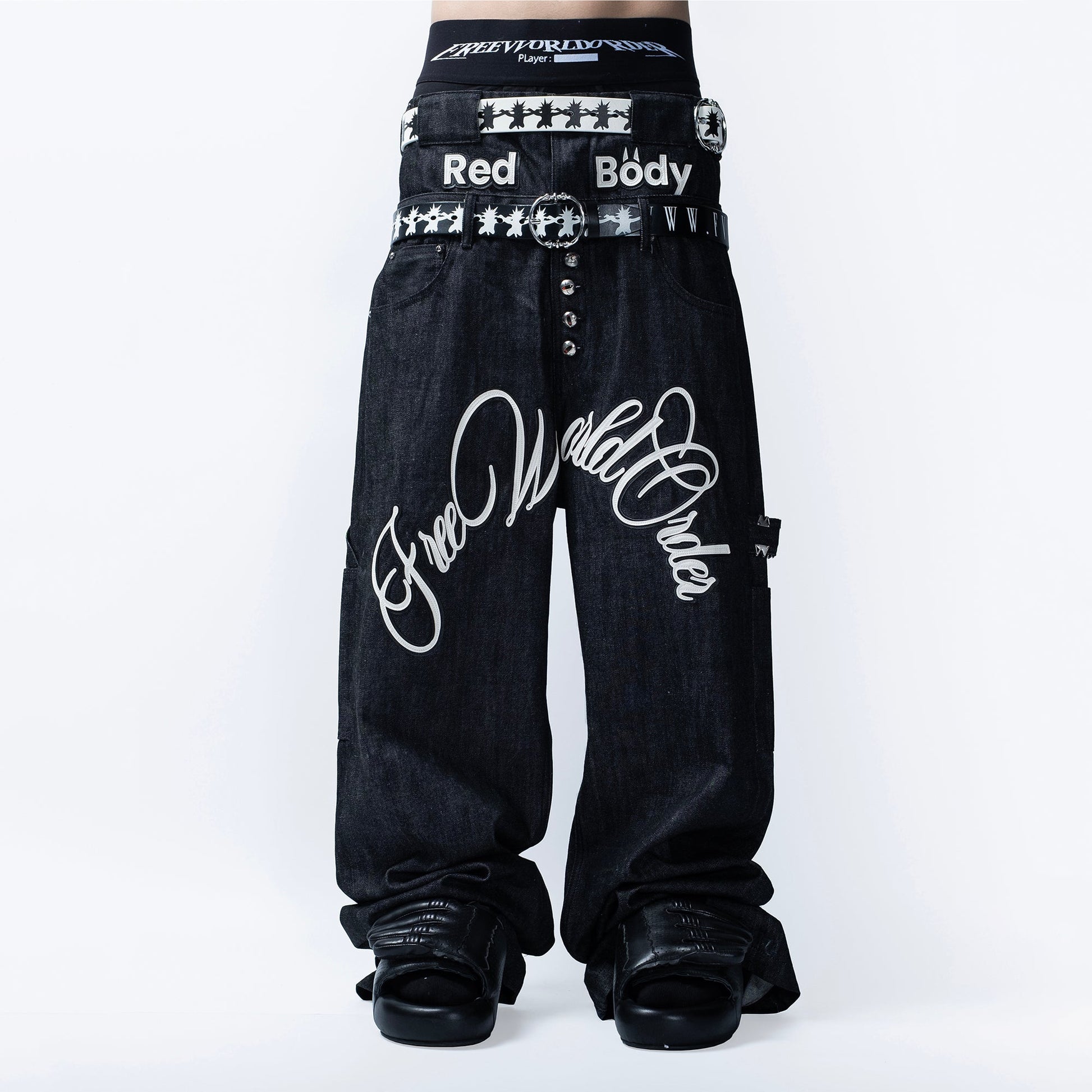 The Skull Kid Full-Print Punk Leather Belt delivers a bold graphic punch with an all-over silhouette print that channels rebellious cartoon energy. Available in black or white base tones, the design features a repeating punk figure motif stamped along the strap, paired with a barbed-ring-style circular metal buckle for added attitude. Its high-contrast aesthetic and exaggerated iconography make it a standout accent for layered streetwear fits.