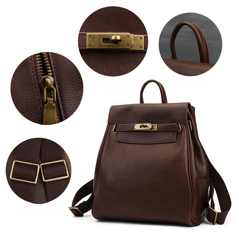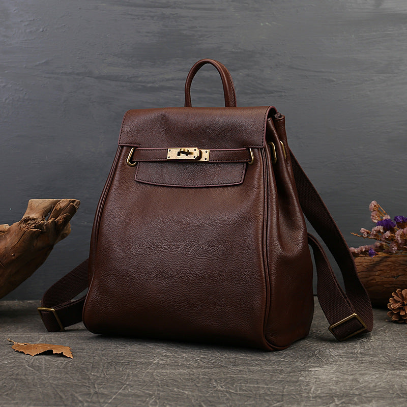 Elevate your everyday style with our premium genuine leather backpack, expertly crafted from full-grain cowhide for lasting durability and timeless appeal. Designed for the modern woman who values both fashion and practicality, this backpack offers ample storage while maintaining a sleek, sophisticated silhouette.