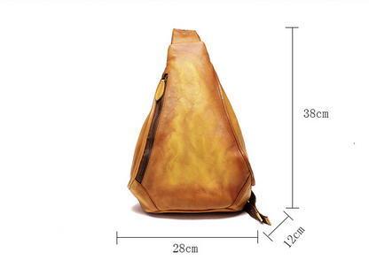 This is a vintage leather back desiged with floral pattern. It features triangle shape and crafed by premium quality leather. Perfect small backpack when going out, shopping, etc.