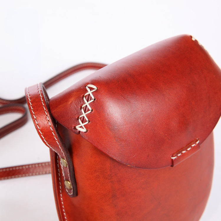 Handmade Sewing Vege Tanned Leather Samll Bag for Women