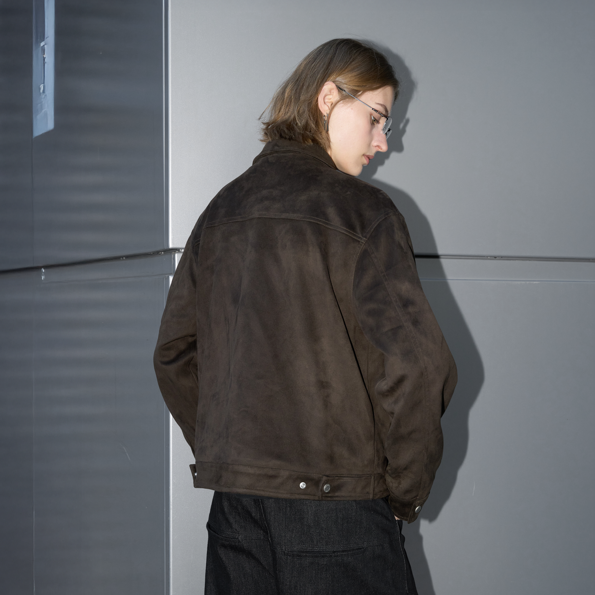 The Minimal Faux-Suede Jacket is a sharp exercise in clean tailoring and material subtlety. Cloaked in a deep, espresso-toned faux suede, it maintains a crisp profile with its narrow collar and linear chest detailing. The design opts for restraint¡ªeschewing excess hardware or embellishment¡ªallowing the richness of texture and precision of cut to carry the form. With its slightly cropped length and angular paneling, it channels a stripped-down approach to classic outerwear codes.