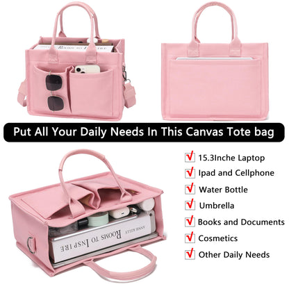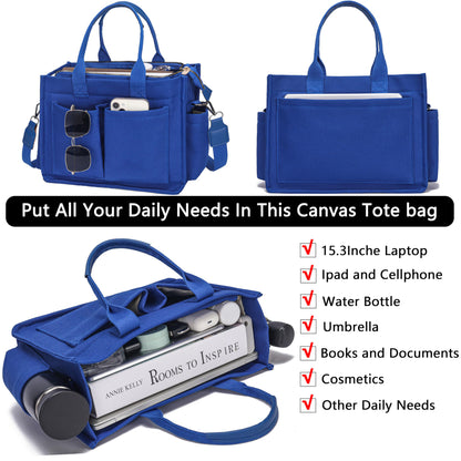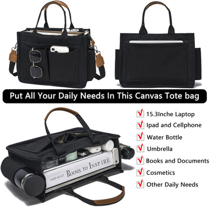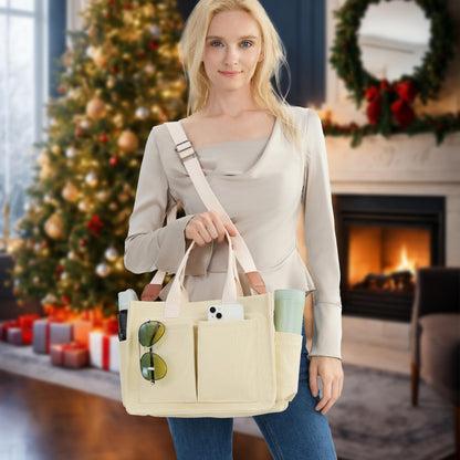 Large Canvas Tote Bag Laptop Crossbody Bag, Spacious Mom Diaper Bag