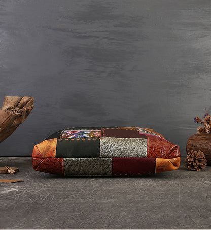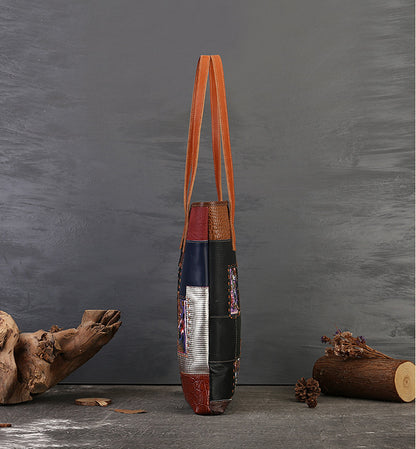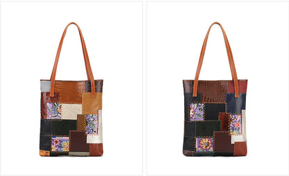 Handmade Vintage Patchwork Cowhide Leather Tote Bag