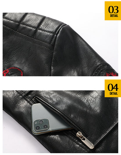 Upgrade your riding gear with our Men’s Winter Motorcycle Jacket, designed for both speed and comfort. Crafted from durable PU leather, this jacket features a bold color-block design and intricate embroidery for a standout look.