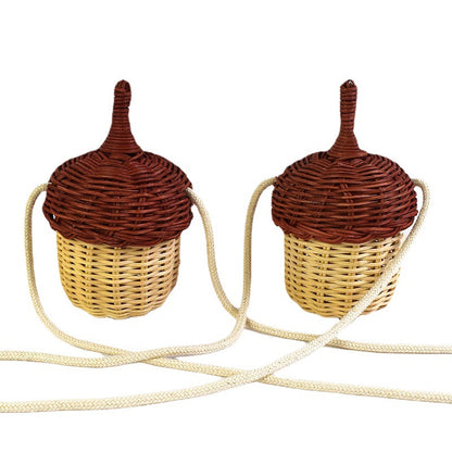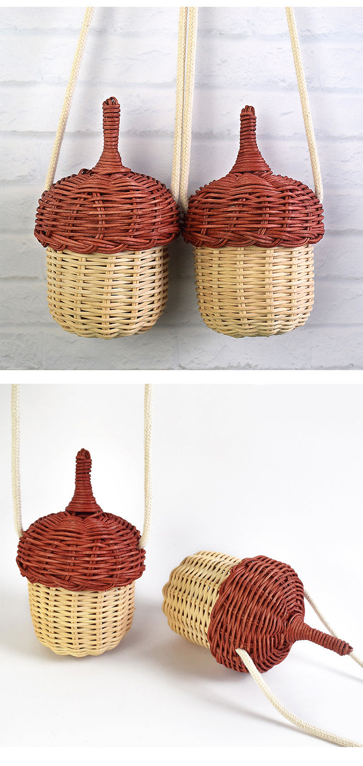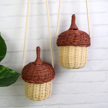 Elevate your style with our charming Mini Woven Crossbody Bag, featuring a convenient lid for secure storage. Handcrafted from natural rattan, this boho-chic bag showcases a delightful chestnut and pinecone design, perfect for adding a rustic touch to any outfit.