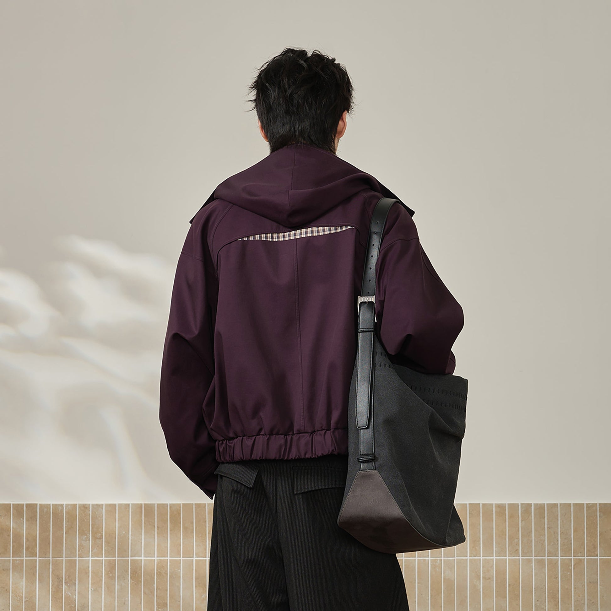 The Convertible Collar & Hood Plaid Pocket Jacket refines a utilitarian staple with smart layering details and subtle textural contrast. Crafted in a soft neutral tone, the jacket features a convertible collar that unzips to reveal a hidden hood, allowing for versatile styling and functional adaptability. Plaid-lined welt pockets and interior accents provide understated contrast, while a boxy cut and snap-tab hem maintain a clean, structured shape. It blends casual refinement with thoughtful construction.