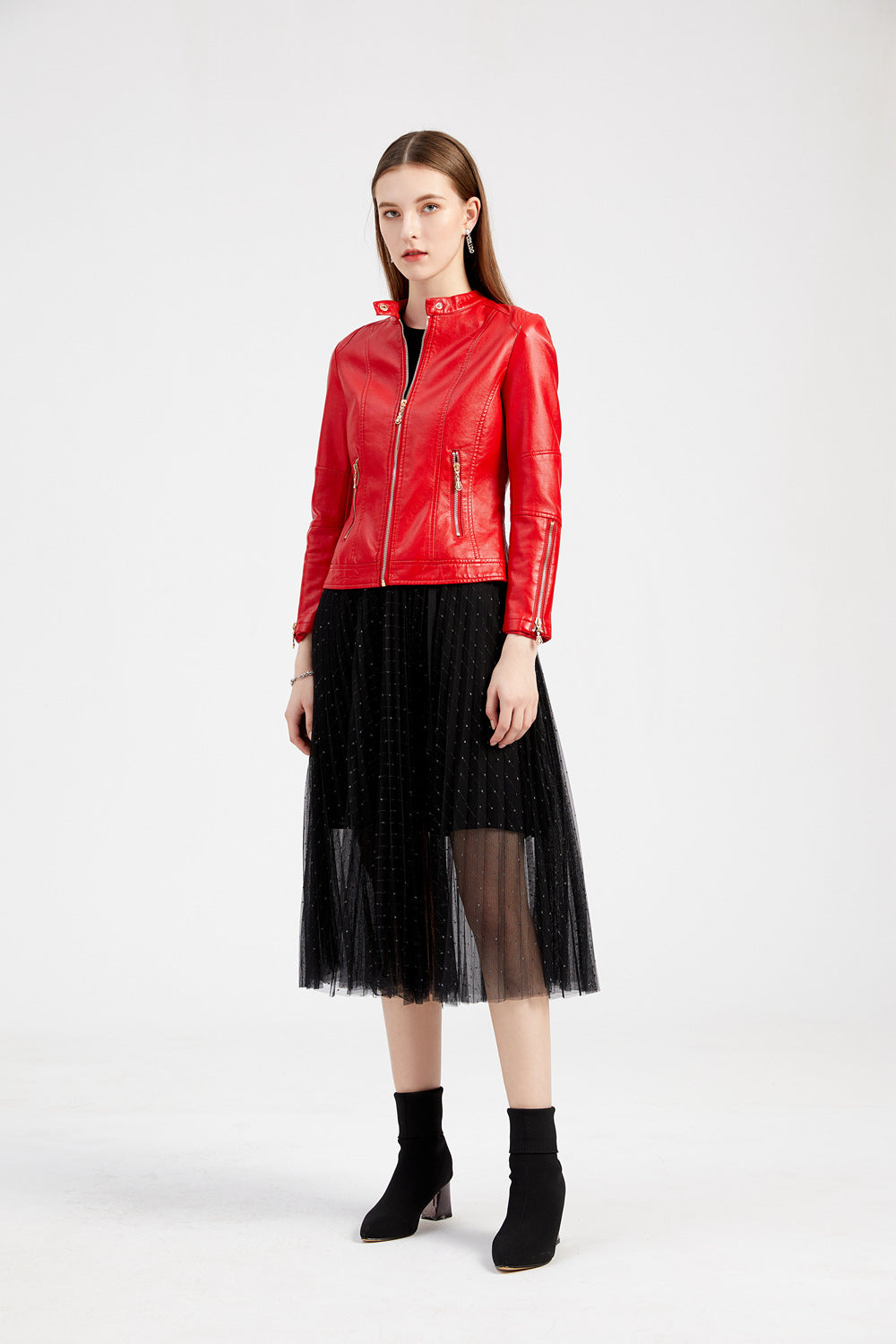 Upgrade your wardrobe with this stylish Women’s PU Leather Short Jacket! Designed with a sleek stand collar and a biker-inspired fit, this faux leather jacket offers a bold, edgy look perfect for any occasion.