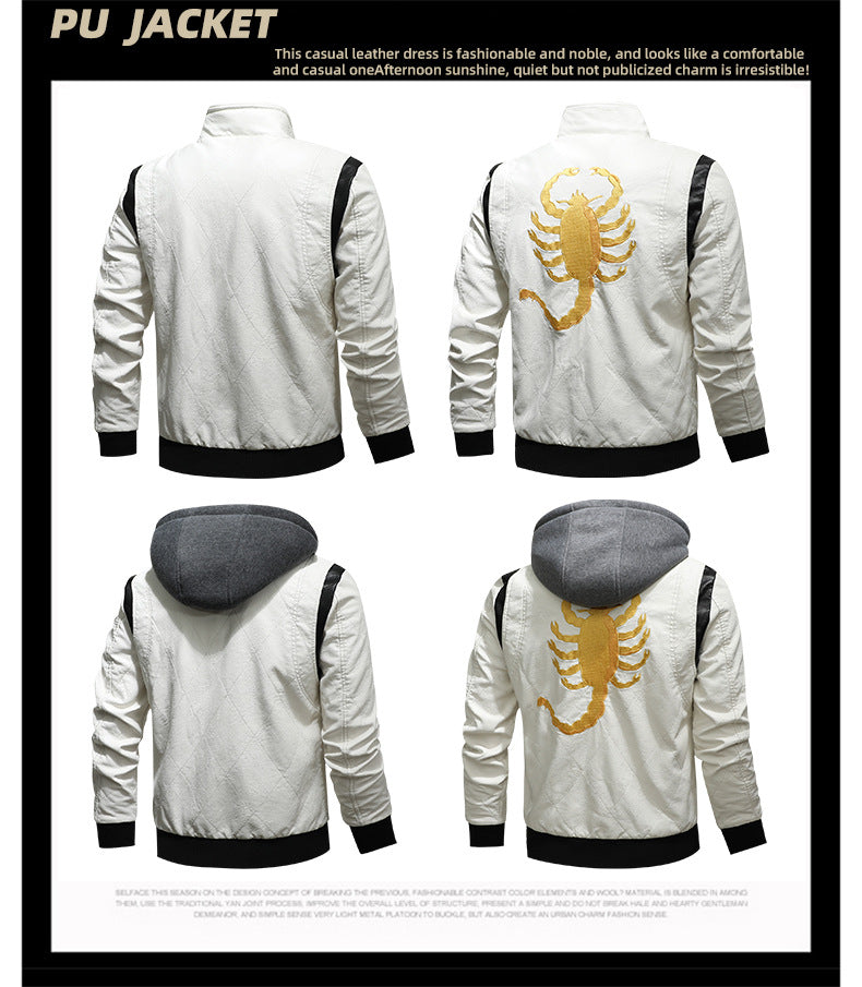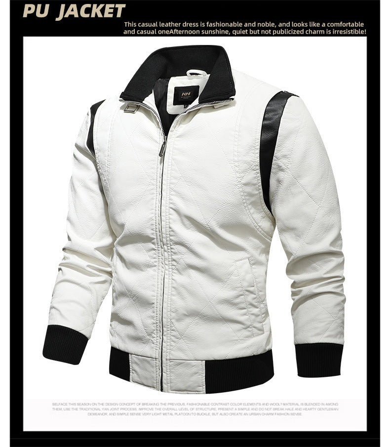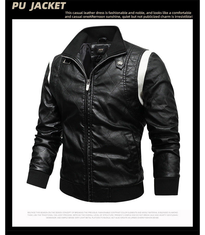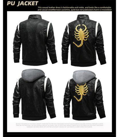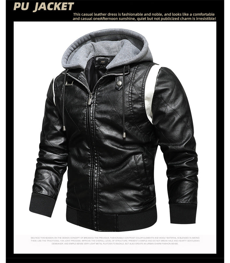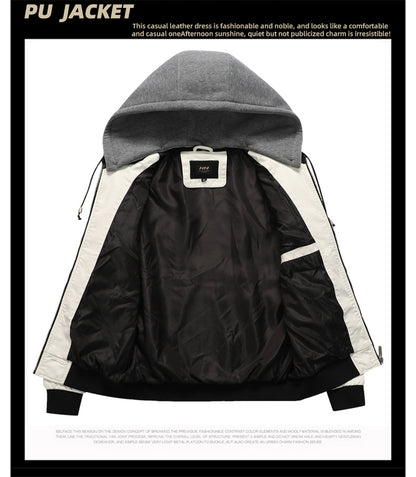 Upgrade your wardrobe with this modern men’s PU leather jacket, designed for both fashion and functionality. Featuring a stand collar, knit hood, and bomber-style silhouette, this jacket offers a sleek, edgy look while keeping you comfortable.