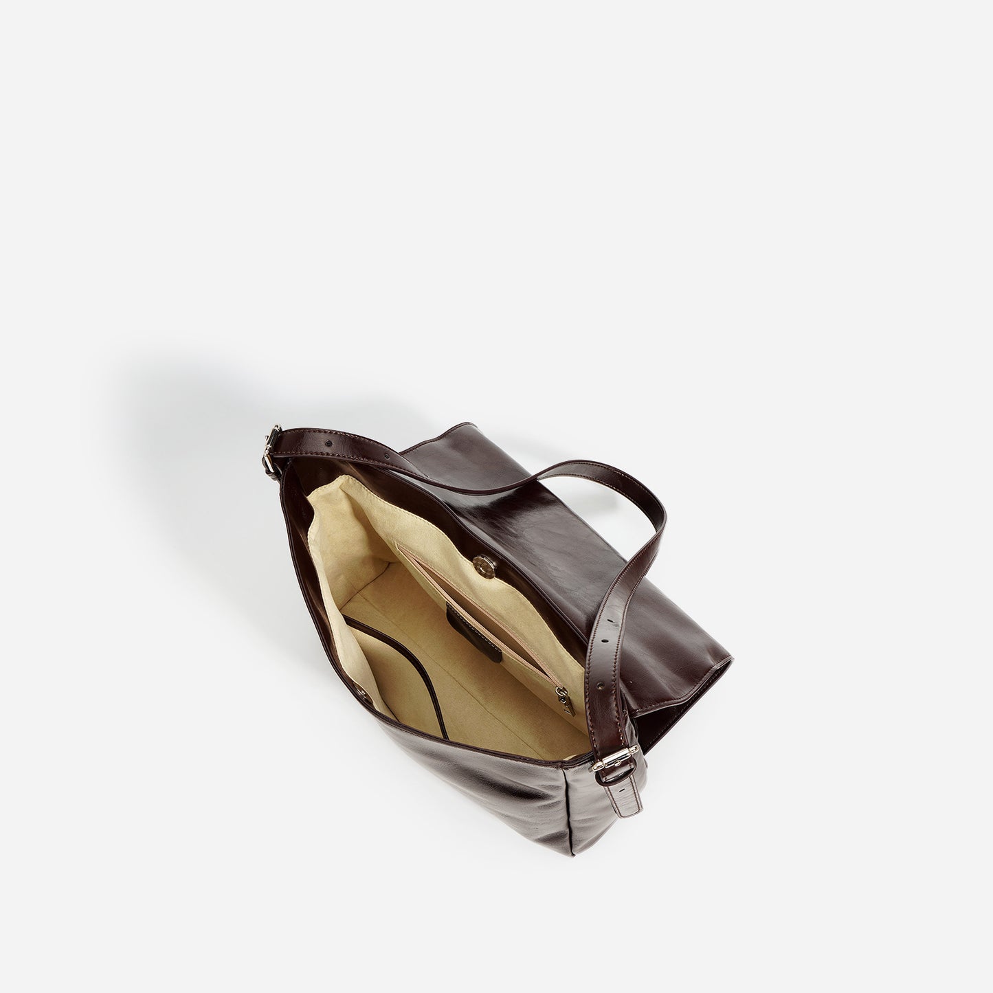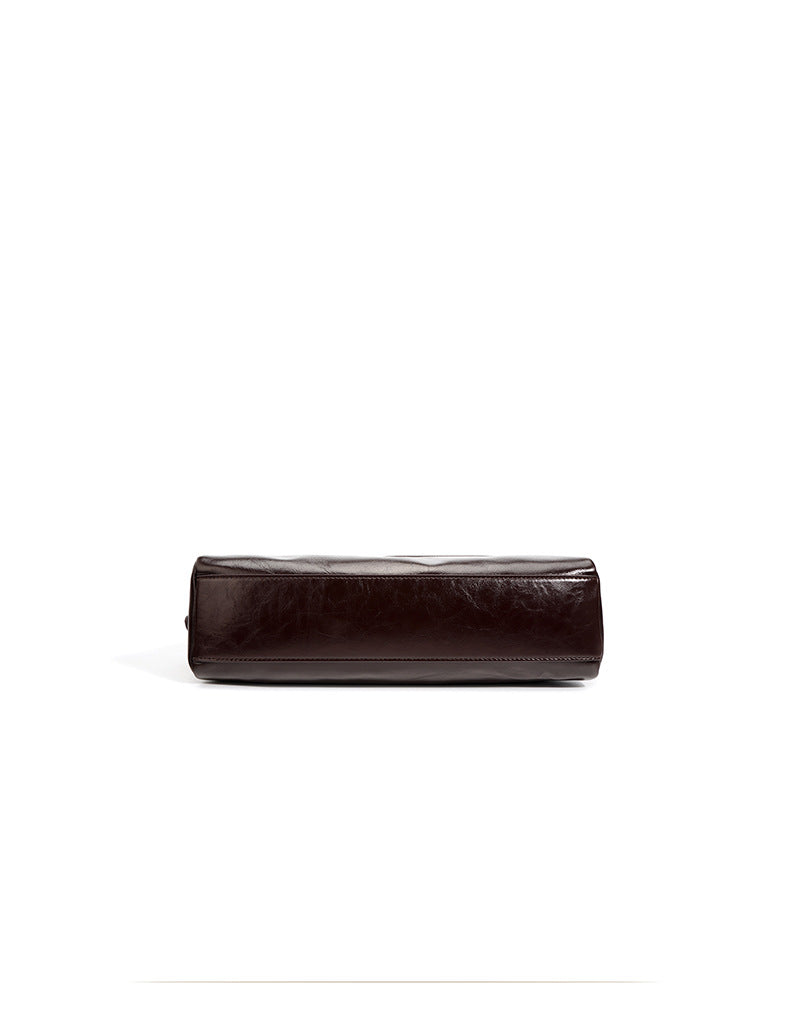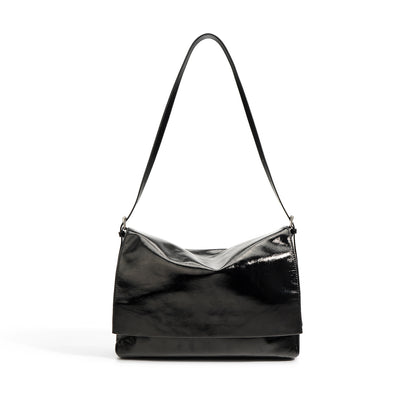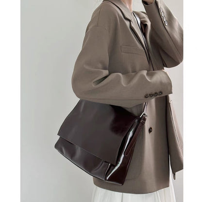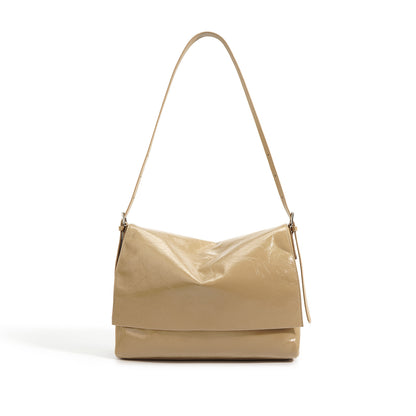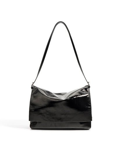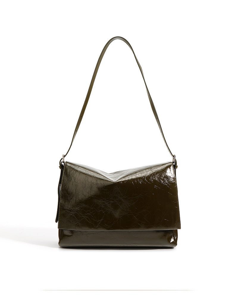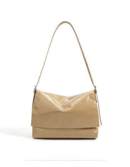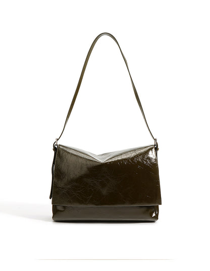 Retro Small Square Bag – Waxed Leather Shoulder Tote, Shiny Crossbody Bag