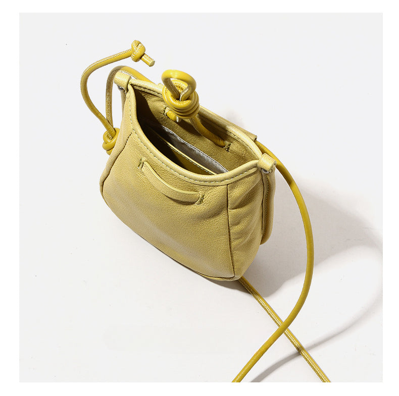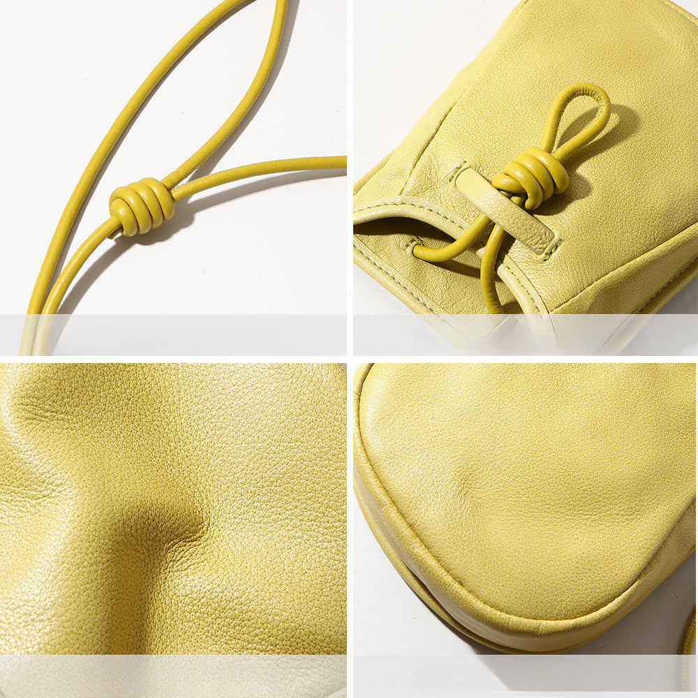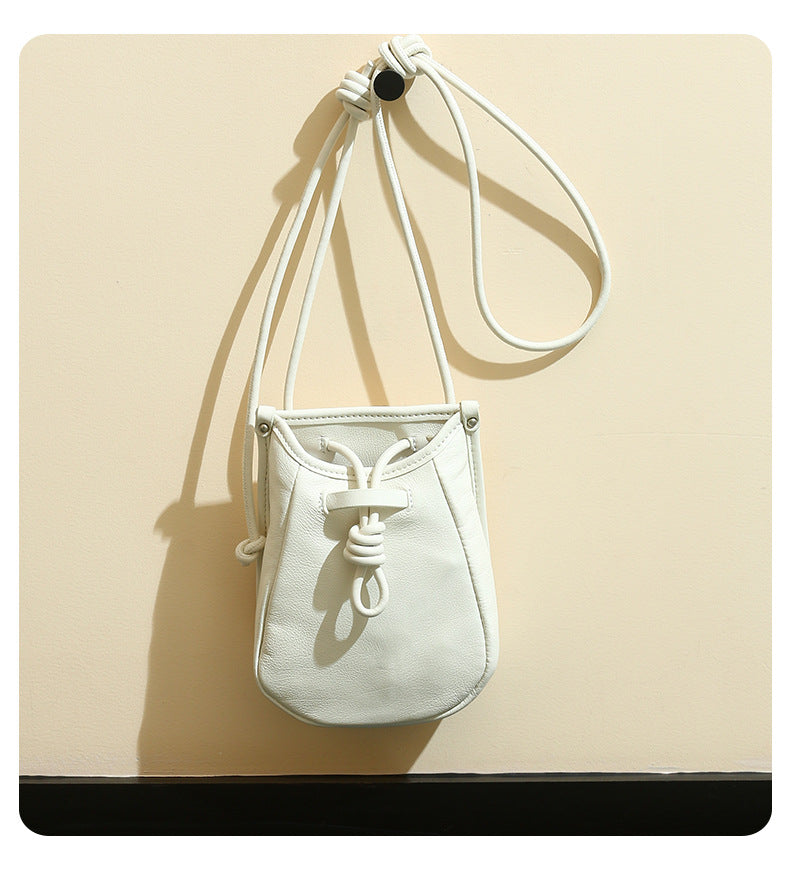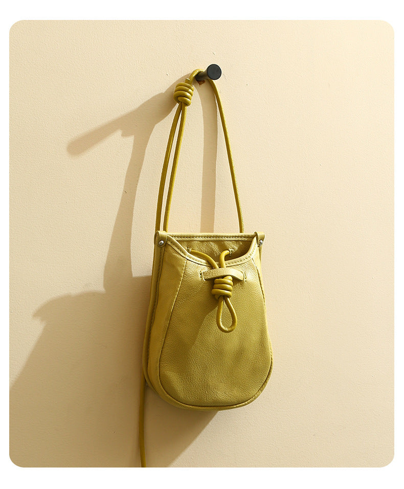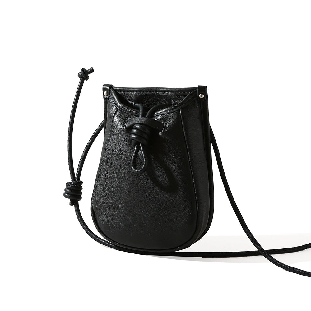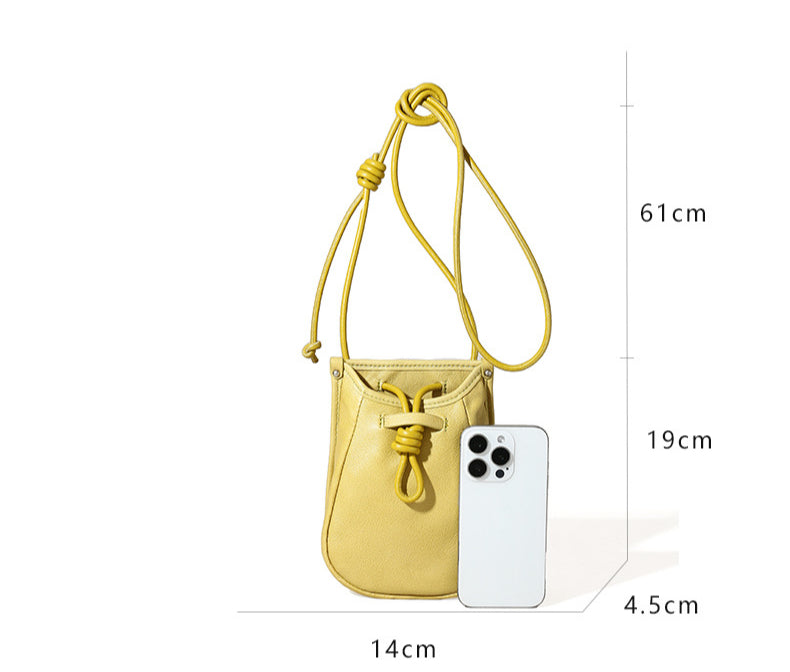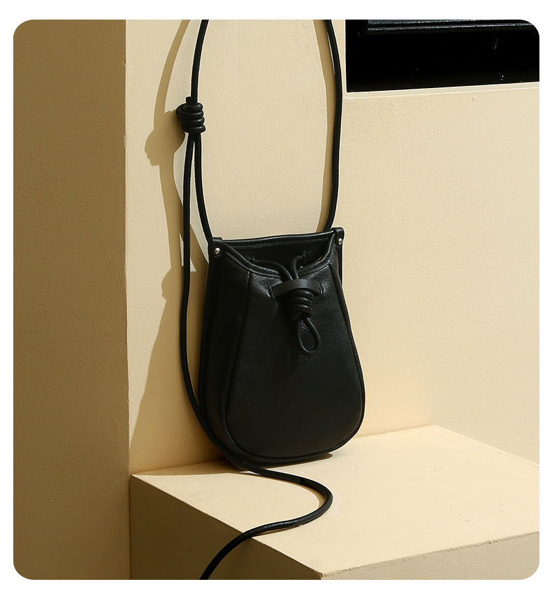 This chic genuine leather drawstring phone bag combines fashion with functionality. Designed for the modern woman who values both style and convenience.