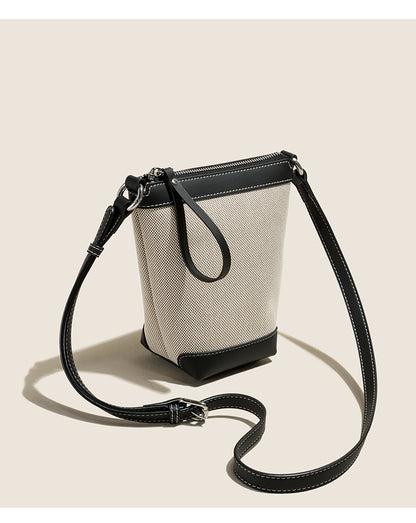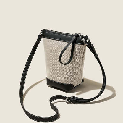 Women Versatile Shoulder Crossbody Phone Bag with Leather & Canvas
