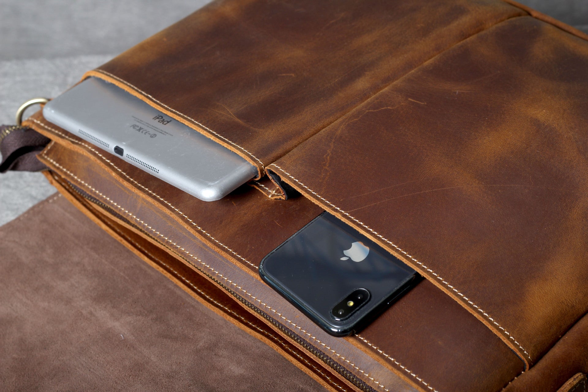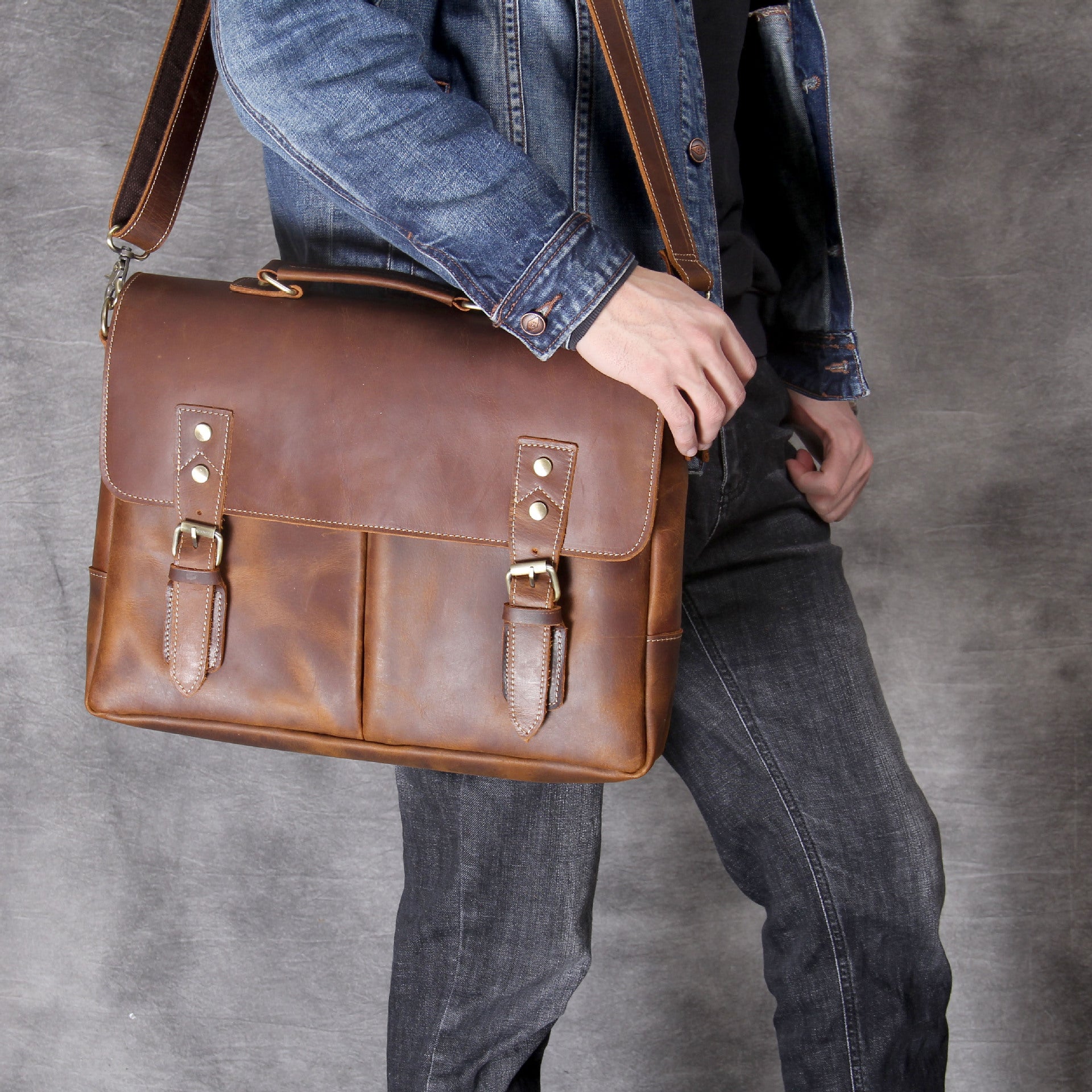Vintage Cowhide Brown Leather Business Briefcase Bag 3091