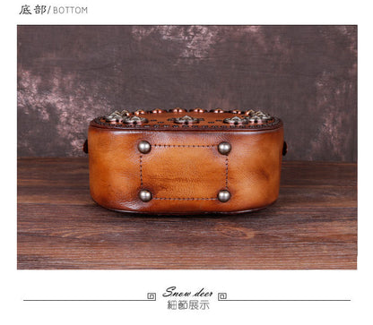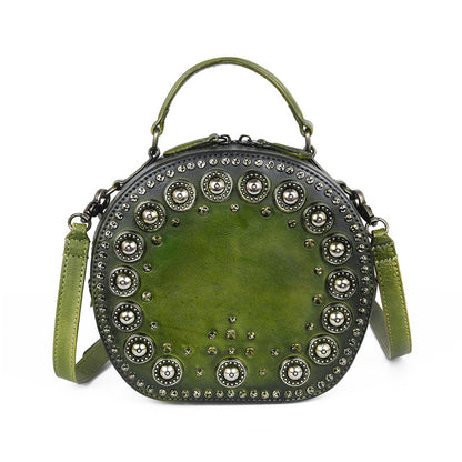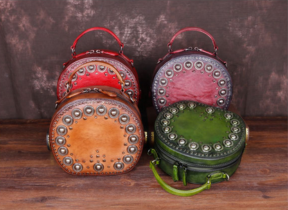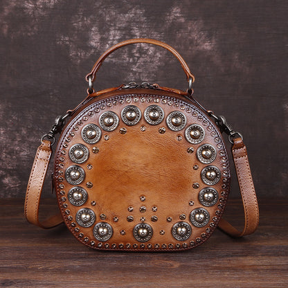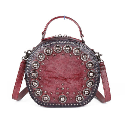 Vintage Handmade Rivet Cute Round Shape Leather Bags 8093