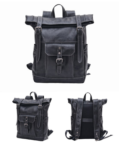 Whether you're heading to the office, a weekend getaway, or a mountain trail, this vintage leather rucksack keeps your belongings secure while elevating your everyday look. A timeless investment for the discerning man.