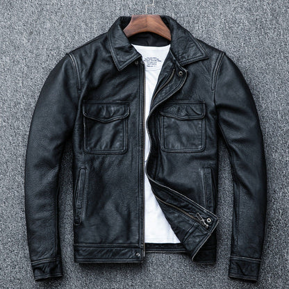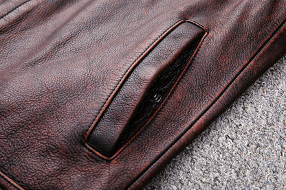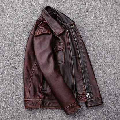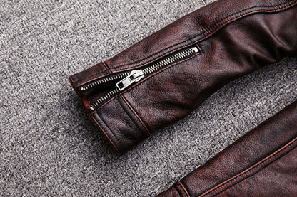 Vintage Motorcycle Cowhide Leather Jackets for Men
