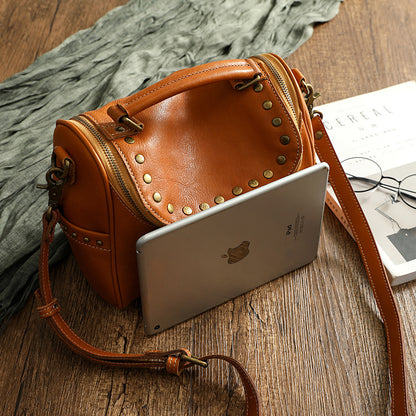 Vintage Rivet Design Genuine Leather Crossbody Handbags 3202