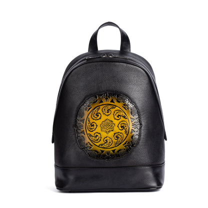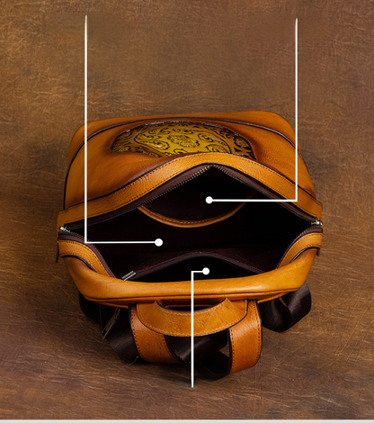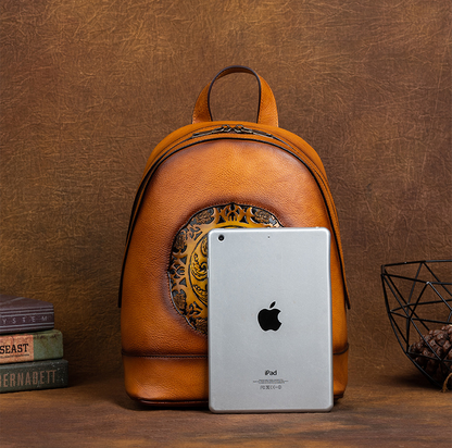 Vintage Vegetable Tanned Leather Embossing Backpack for Women C319