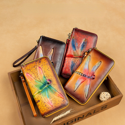 Vintage Women RFID Leather Hand Drawn Craft Wallet 6042