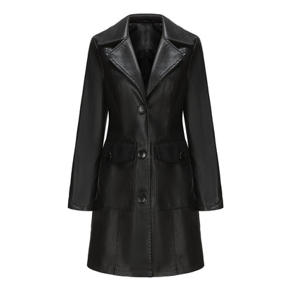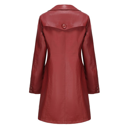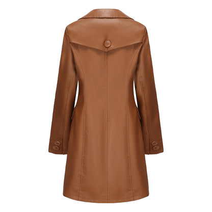 Women Long Sleeves Faux Leather Coat