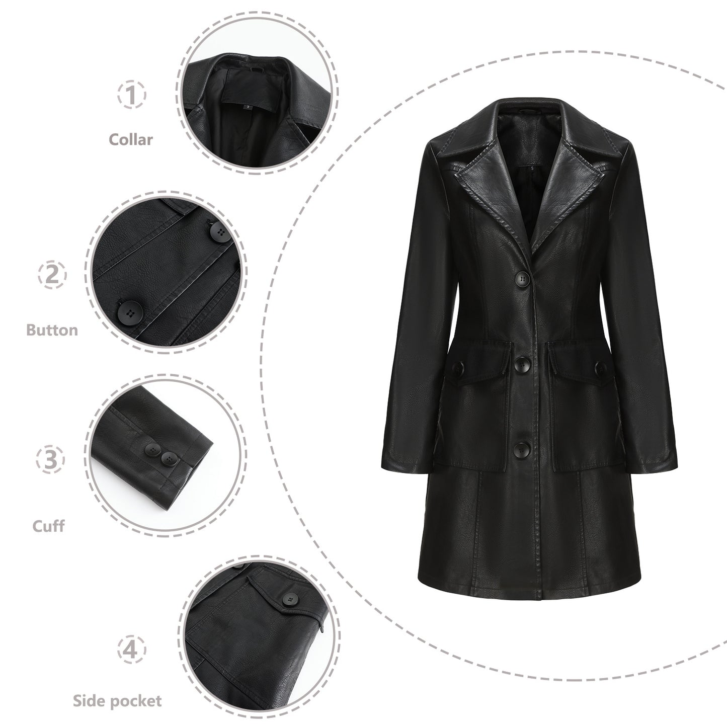 Whether you're heading to the office or stepping out for a weekend brunch, this stylish leather coat ensures you make a statement. Shop now and embrace effortless sophistication.