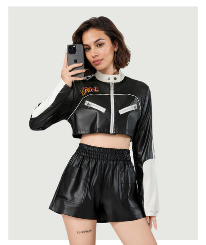 Biker-Inspired Silhouette – Asymmetrical zipper, sleek lapels, and a fitted cut for a flattering look.