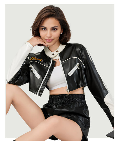 Upgrade your wardrobe with this eye-catching women's color-block leather jacket, designed for those who love a bold, fashion-forward look. Featuring contrast panel detailing, this moto-style biker jacket combines edgy aesthetics with premium craftsmanship for a standout piece that turns heads.