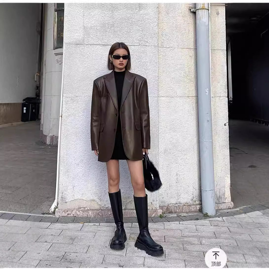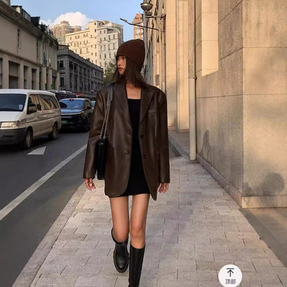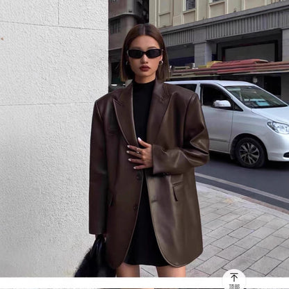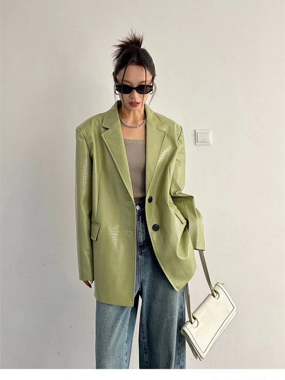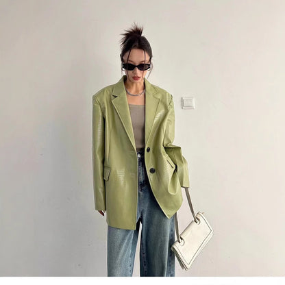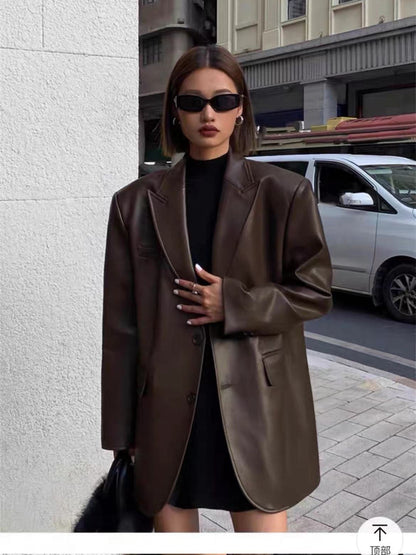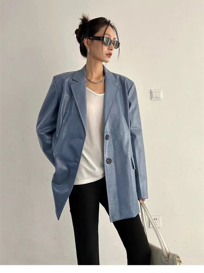 Women's Faux Leather Blazer – Oversized Casual Jacket
