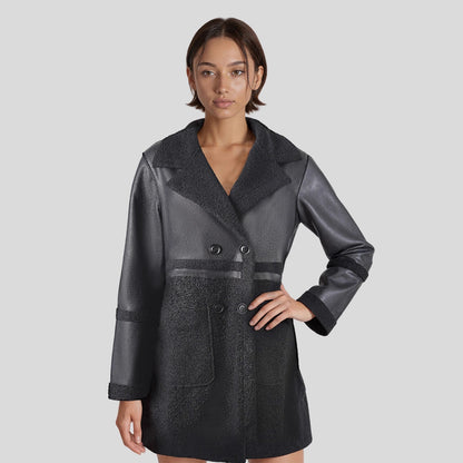 Upgrade your cold-weather wardrobe with this Women’s Mid-Long Leather Jacket, featuring a retro-inspired patchwork design for a unique, fashion-forward look. Crafted with premium materials, this jacket is reversible, offering two stylish looks in one. The plush faux fur lining provides exceptional warmth, making it perfect for chilly days.
