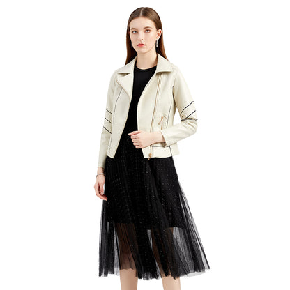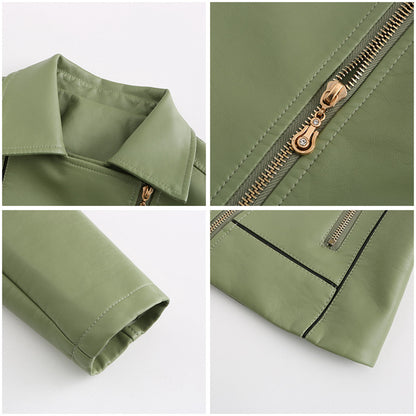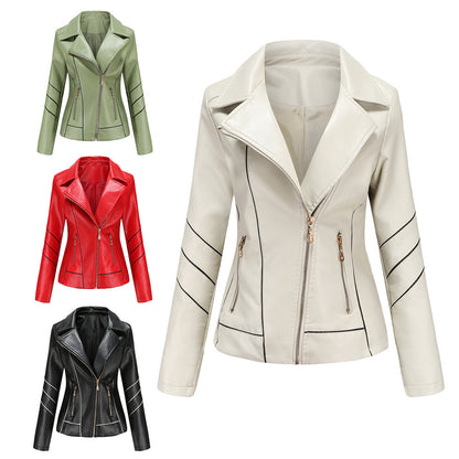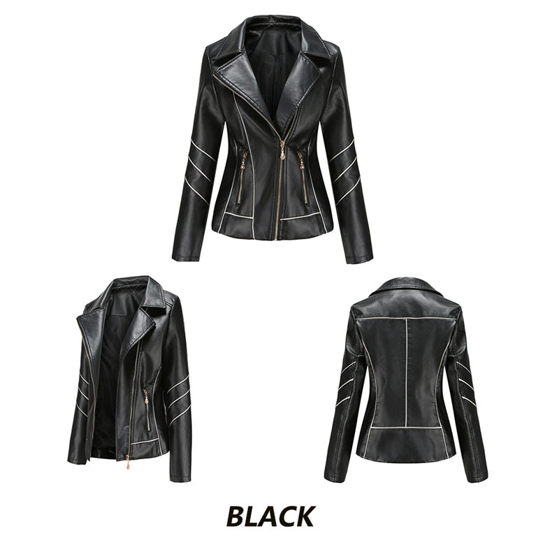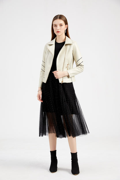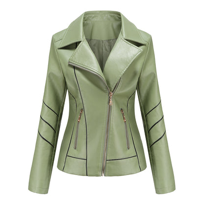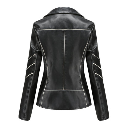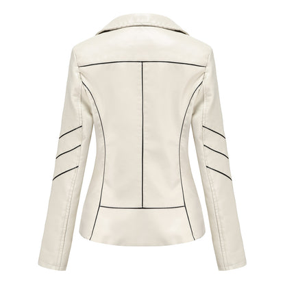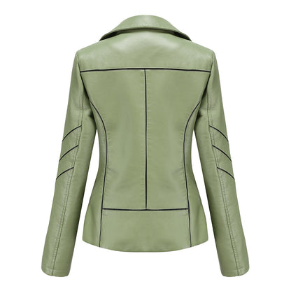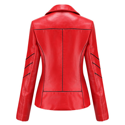 Women's PU Leather Jacket Short Biker Jacket for Spring & Fall