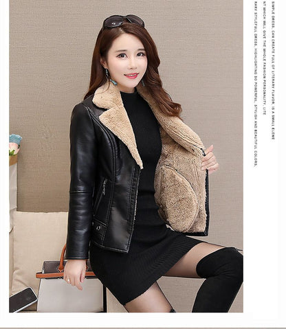 Women's Winter Faux Leather Jacket Thickened Faux Fur Lined