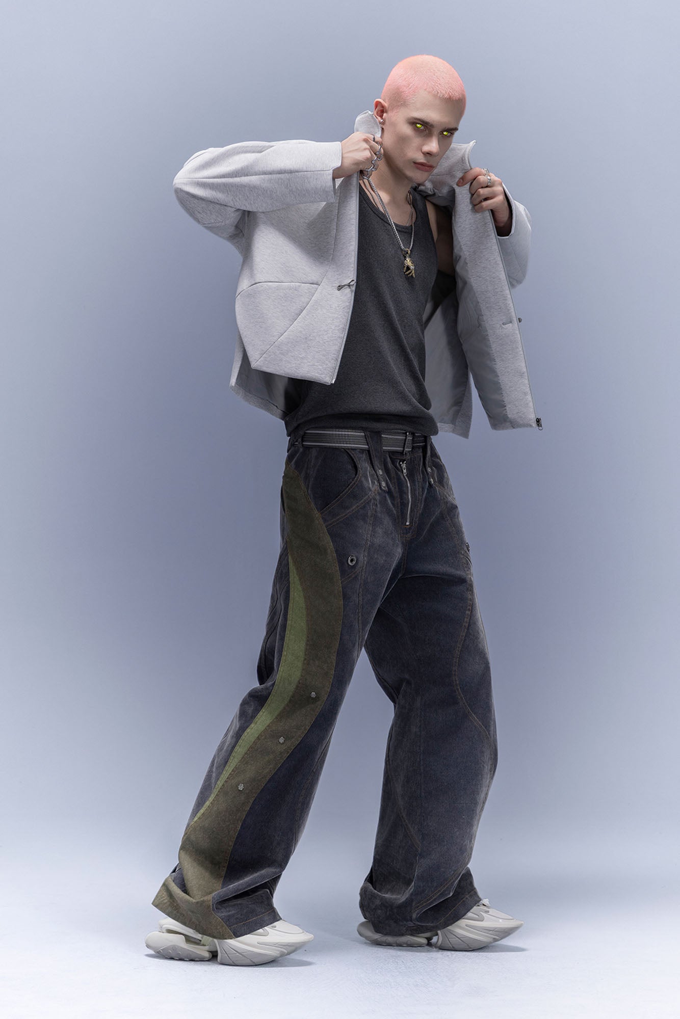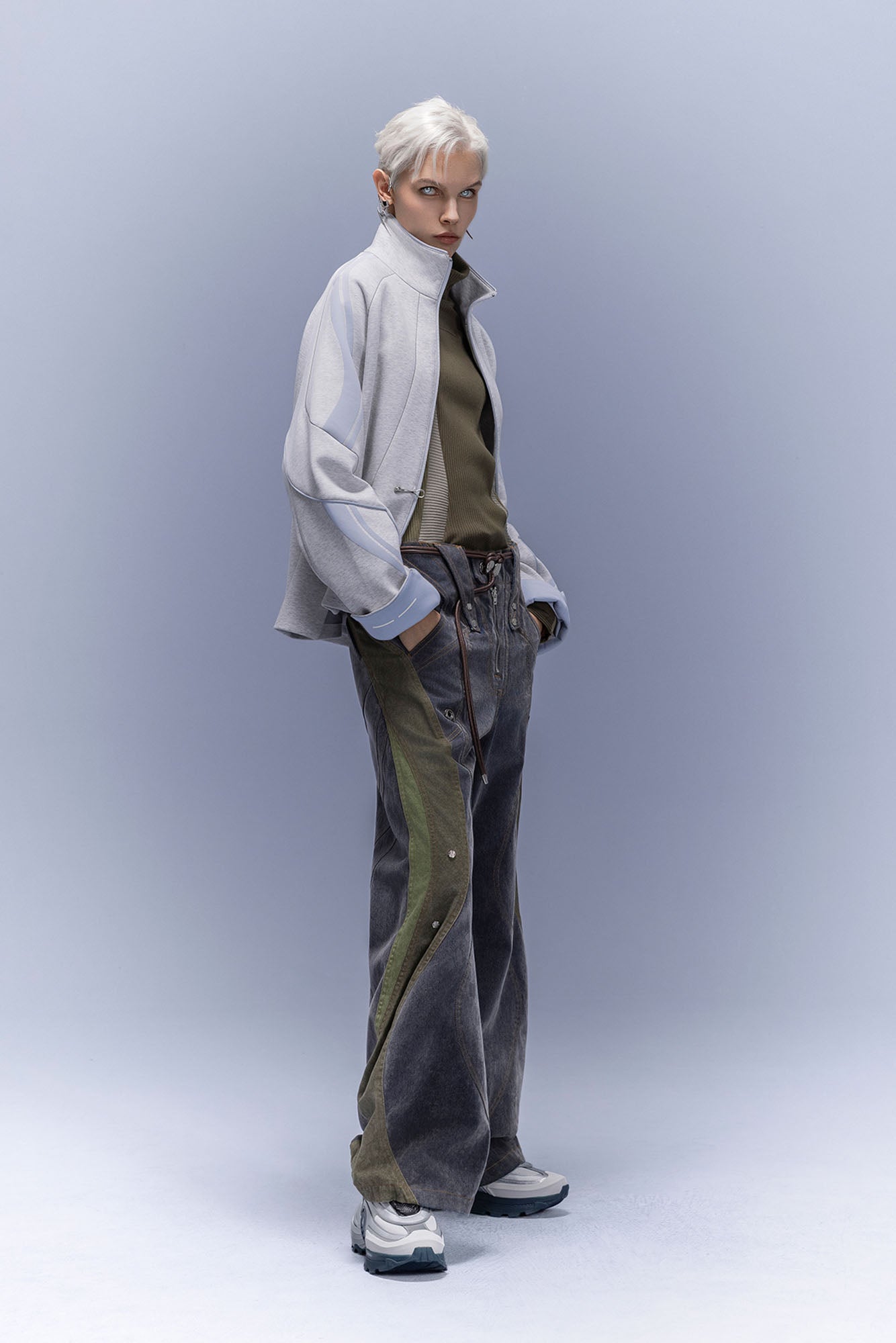 This track jacket reworks athletic heritage through sharp paneling and a cropped, contemporary silhouette. Raglan sleeves create fluid shoulder lines, while contrast panels and piping add structure and visual rhythm throughout the body. The slightly oversized cut keeps the fit relaxed without losing precision, striking a balance between sport-driven design and modern streetwear. Clean, directional, and quietly bold, this piece is built to stand out without overstatement.